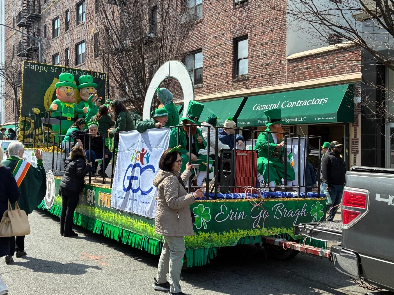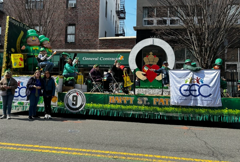 GEC was out in full force on March 22nd , as a large group of GEC supporters, friends, staff, and families walked, marched, and floated in the Bay Ridge St. Patrick’s Day Parade. The parade has been an annual event in Bay Ridge since 1993, when the parade was first launched by a group of Irish community and business leaders who wanted to share Celtic culture and the love of their Irish heritage. This year was an especially important one for those of us at GEC who wanted to celebrate with GEC’s very own Joseph Riley, one of the parade’s Deputy Marshals.