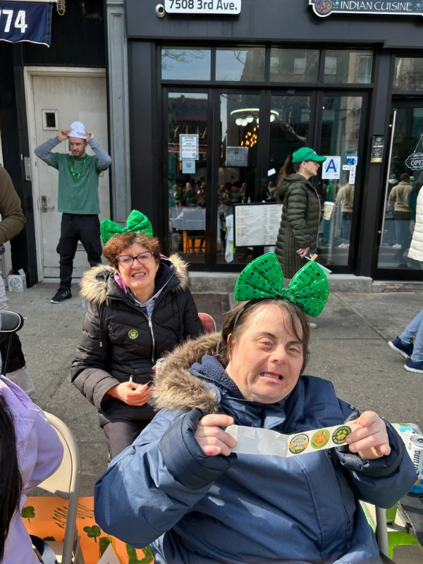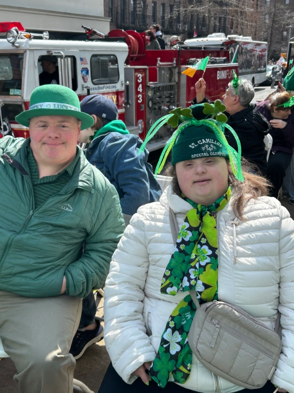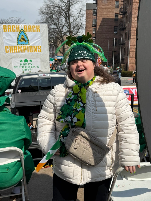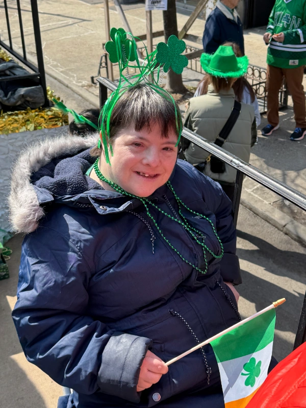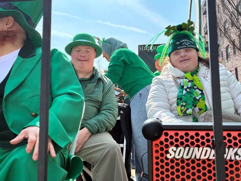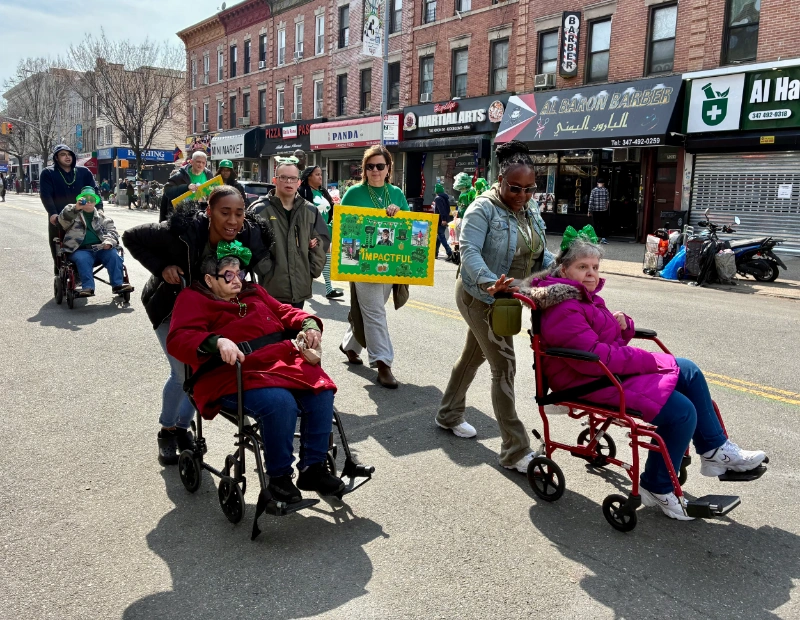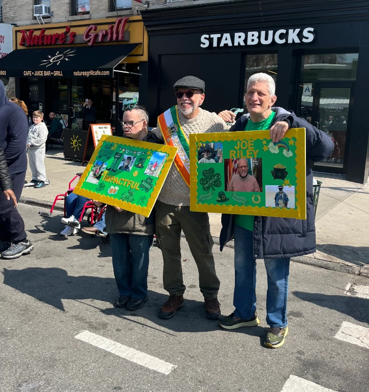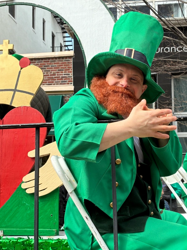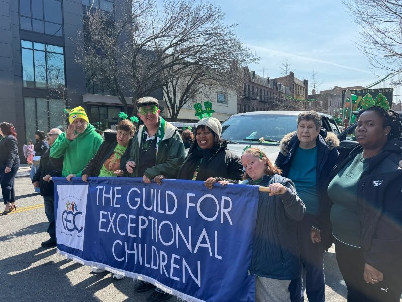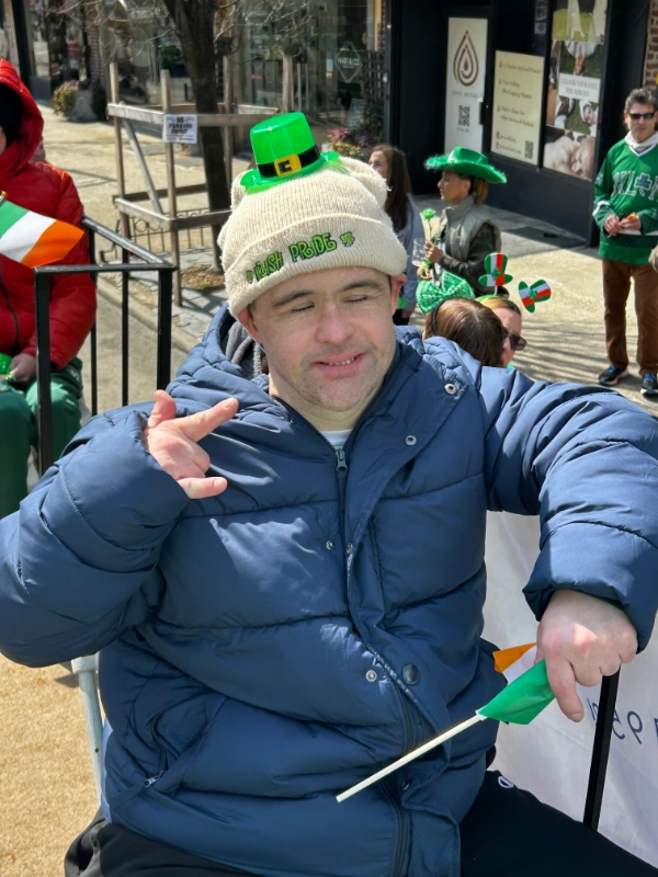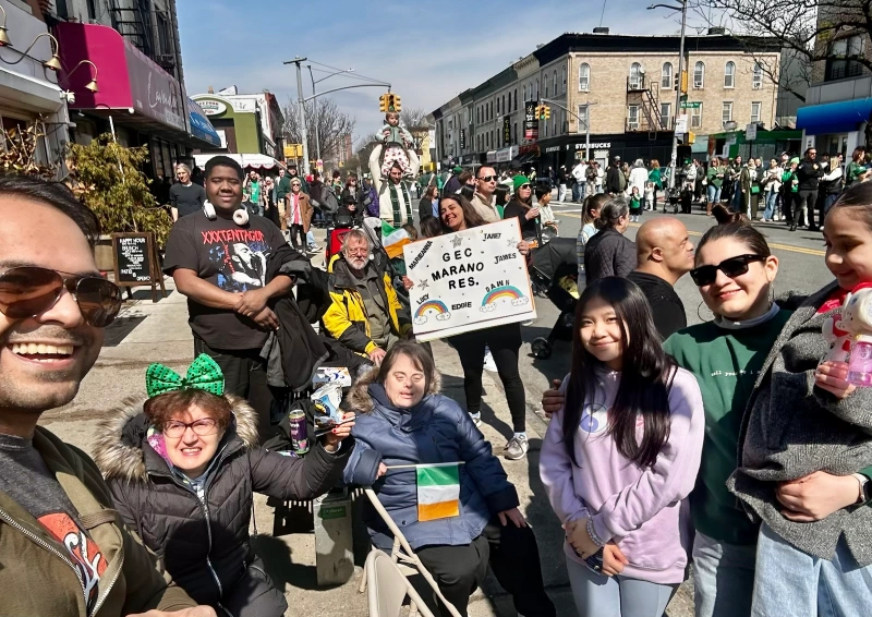 On parade day, Joe and his family and friends joined with many, many more of his GEC supporters who enjoyed participating in the parade. GEC was well represented with a beautifully decorated float, marchers proudly carrying the agency banner and residents and staff on the side lines waving posters and banners. GEC has many program sites in the Bay Ridge community with a number of residential group homes, apartments, and day programs. A large number of GEC’s 470 employees also reside in the community. Our residents and program participants enjoy working and volunteering in Bay Ridge and love being part of the Bay Ridge community’s special events, including participating in the annual parade. Joe appreciated seeing a great number of familiar faces lining the streets, supporting him as he marched, and in typical Joe style, ran off the parade route to greet the residents, participants and staff cheering him on.