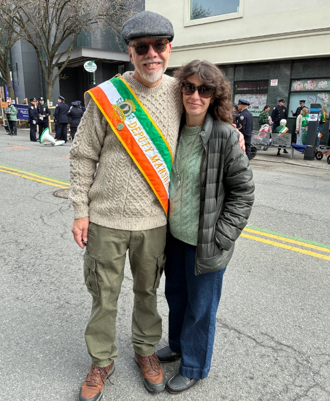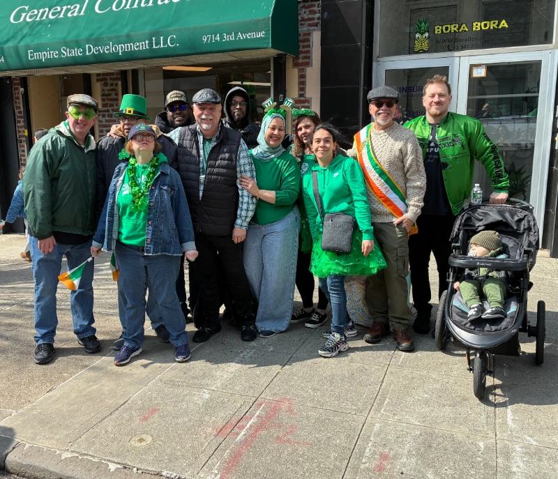 Joe and some of his family and friends celebrated with other parade honorees at an earlier event at the El Caribe where each of the Deputy Marshals, the Grand Marshal, and the Irish Family of the Year were acknowledged for their contributions to the Bay Ridge community. After nearly 40 years of work at GEC, one of the largest employers in Bay Ridge, Joe continues to draw inspiration from the individuals GEC supports, their families, and the dedicated staff who serve them. The organization has long been embraced by the neighborhood, and Joe is grateful to be part of such a supportive community. This honor combined two things Joe has great enthusiasm for: GEC and his Irish heritage!