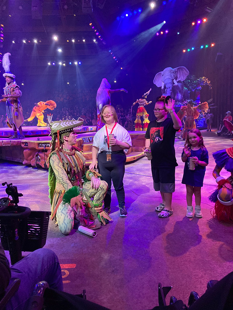 It was a great start to a trip that got even better once they arrived at her favorite attraction in Animal Kingdom, Festival of the Lion King, where she was treated like a queen. From their many visits there, the Ramsdal’s have become friendly with some of the staff and, prior to their arrival, reached out to Carmenza, a Disney employee who planned some extra special surprises for Janet. Carmenza arranged for VIP treatment for the family: the best seats, having Janet help lead a dance group and be in the parade in the show, having the audience sing happy birthday to her, and a private meet and greet with the entire cast after the show.