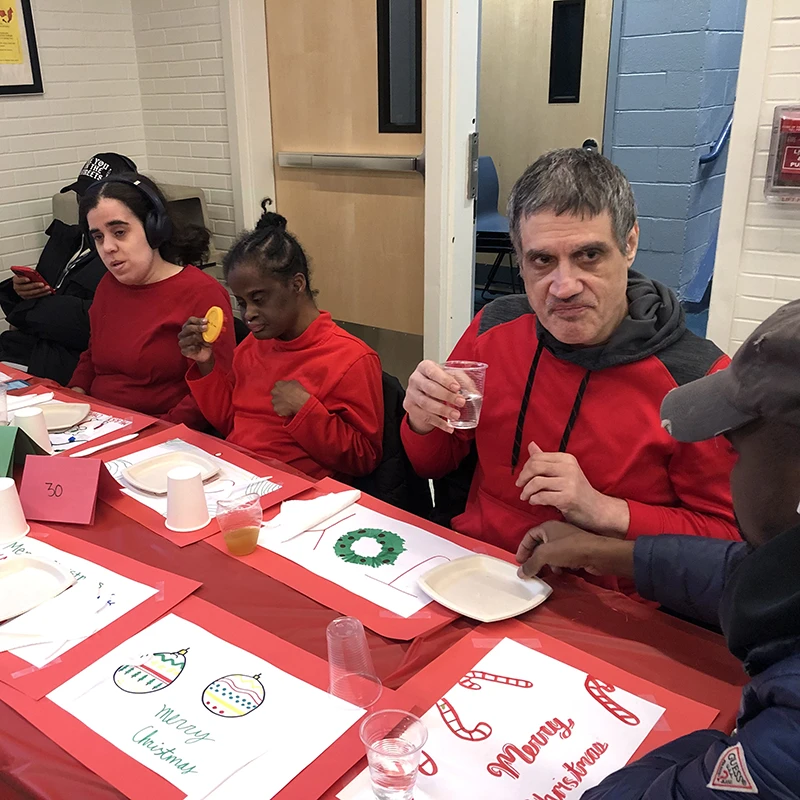Xaverian High School students hosted 100 individuals and staff from GEC at their Christmas Cabaret on December 4th. Their musical department put together a beautiful program to entertain the GEC group and other community members. The students shared their many talents and the audience members enjoyed a variety of musical genres including jazz, oldies, pop and big band. There were so many special moments including listening to the talented soloists but a highlight for many of the GEC group was when they were invited up to dance. The students and volunteers were so attentive as they served delicious sliders, cider, cookies and hot chocolate. The tables were set up beautifully with attention to the holiday theme. The GEC truly appreciates John Dormer and the Xaverian community for inviting us to this beautiful holiday event.